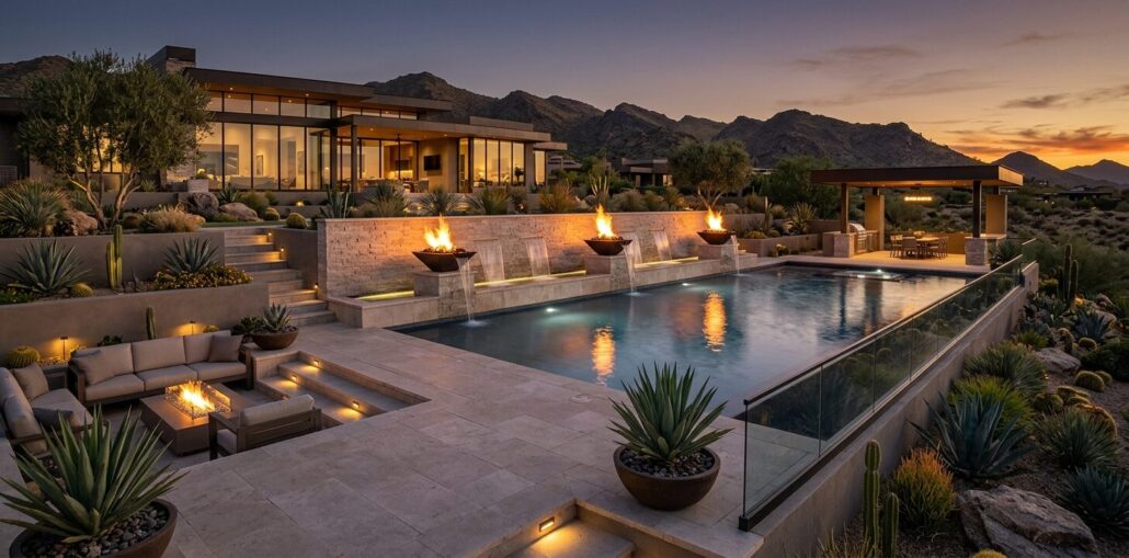 Fire brings warmth, movement, and drama. Water brings calm, reflection, and elegance. When designed well, the combination creates balance, especially in modern Scottsdale and Paradise Valley backyards where clean lines and luxury materials matter.